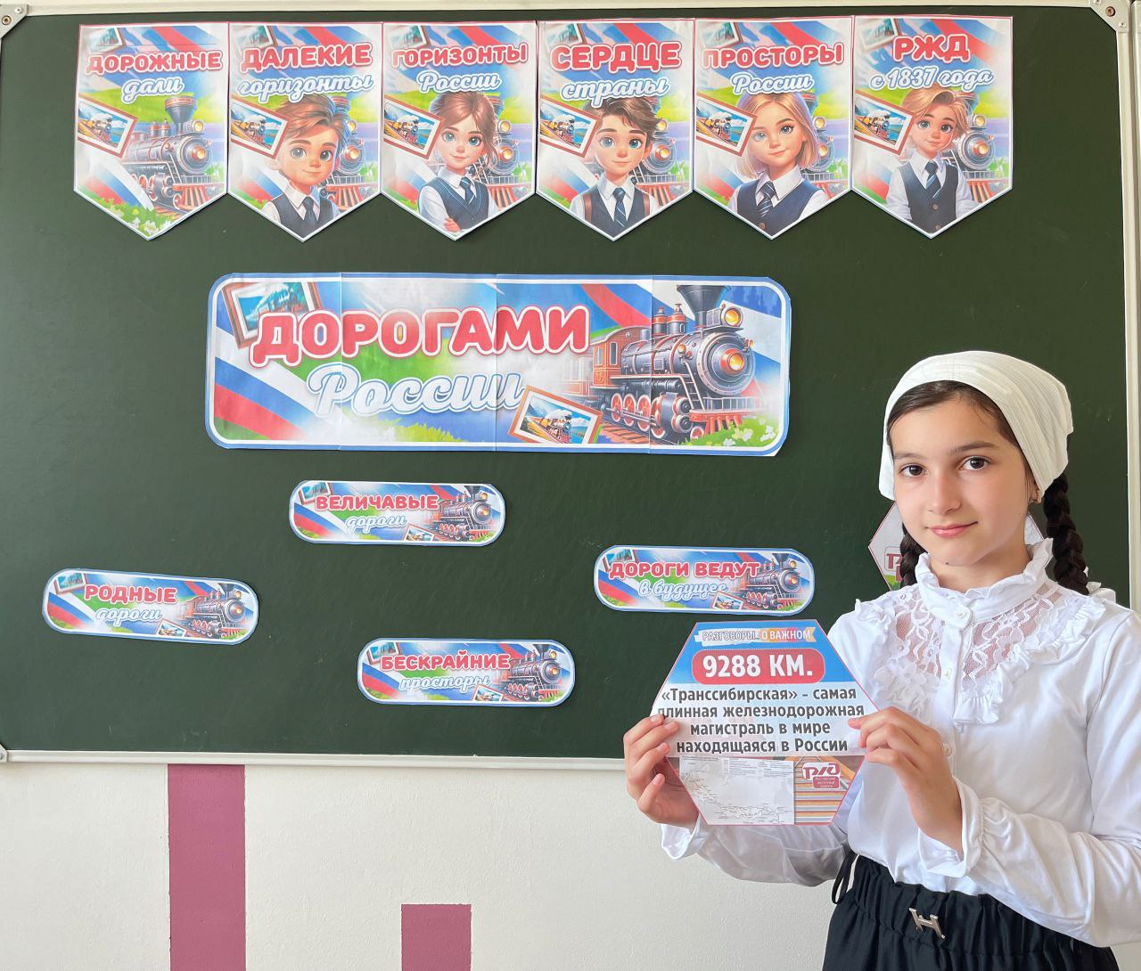 16.09.2024Урок из цикла "Разговоры о важном" на тему «Дорогами России» с целью расширения у ребят знаний о транспортной системе нашей страны, о многообразии железнодорожных профессий и многом другом.