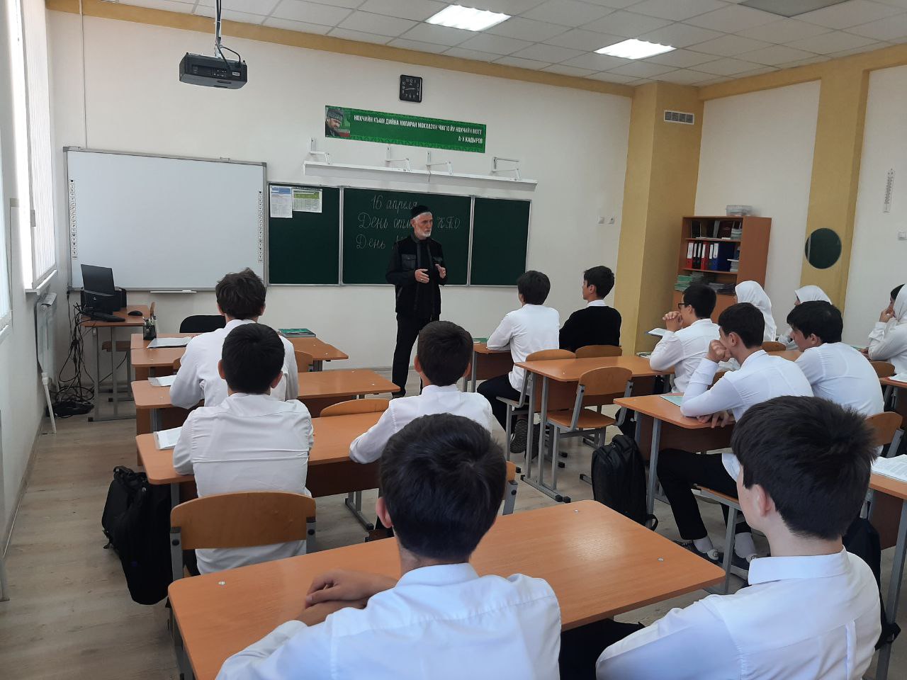 Согласно плану воспитательной работы, сегодня в нашей школе педагог по ДНВ провел беседу ,посвященную Дню мира: «Наш Глава Чеченской Республики, Герой России Кадыров Р. А. – созидатель мирной жизни!» Дибиров С.С. в беседе рассказал учащимся, что день мира в ЧР - это очень светлый праздник, и отмечается он в нашей республике с 2009 года после того, как Президент ЧР – издал указ об отмене режима контртеррористической операции на территории ЧР. Режим КТО действовал в республике с 1999 года. Отмена КТО дало нашей республике много: начались инвестиционные проекты, возродился аэропорт, театры, школы, дома культуры и много других зданий. Поэтому, этот день является для чеченского народа светлым и радостным днем! #МБОУ"СОШ №5 г.Шелковская"