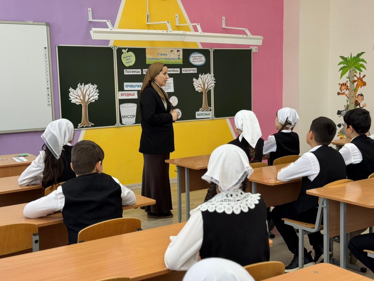 Социальным педагогом Даудовой Л.Б. совместно с классным руководителем 4 «Б» класса Юнуевой Р.Ш. был организован и проведен яркий и позитивный час здоровья под названием "Страна здоровых привычек&